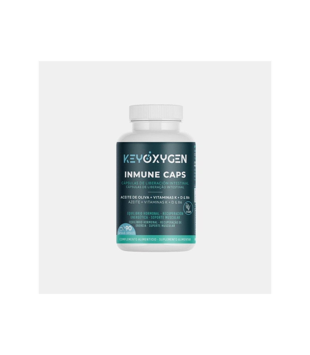 KeyOxygen Inmune Caps 90 cápsulas, cápsulas de liberación intestinal para el equilibrio hormonal, la recuperación energética y el soporte muscular.