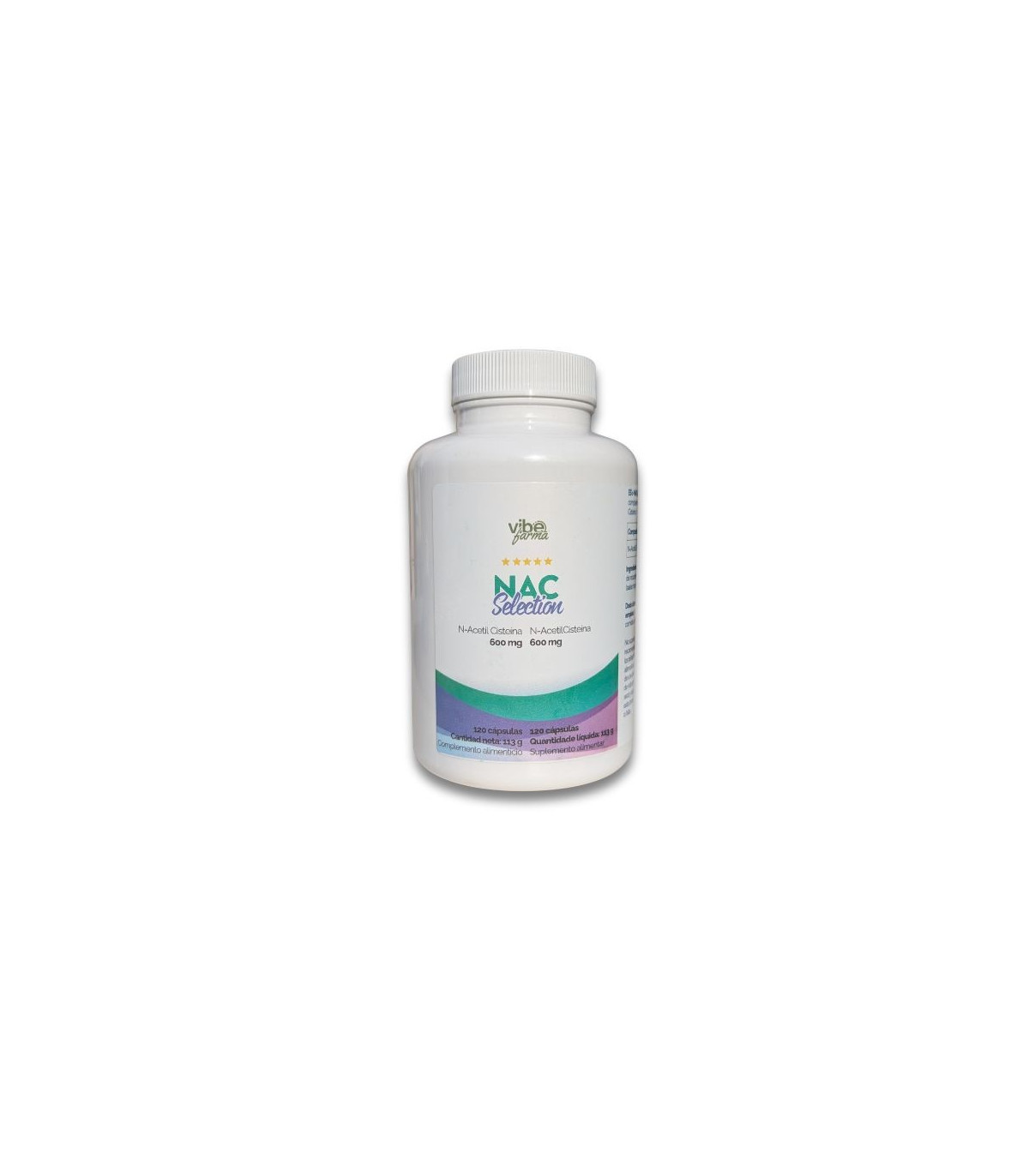 La NAC Selection de Vibefarma aporta 600 mg por cápsula, proporcionando un apoyo clave para el bienestar y la protección antioxidante.