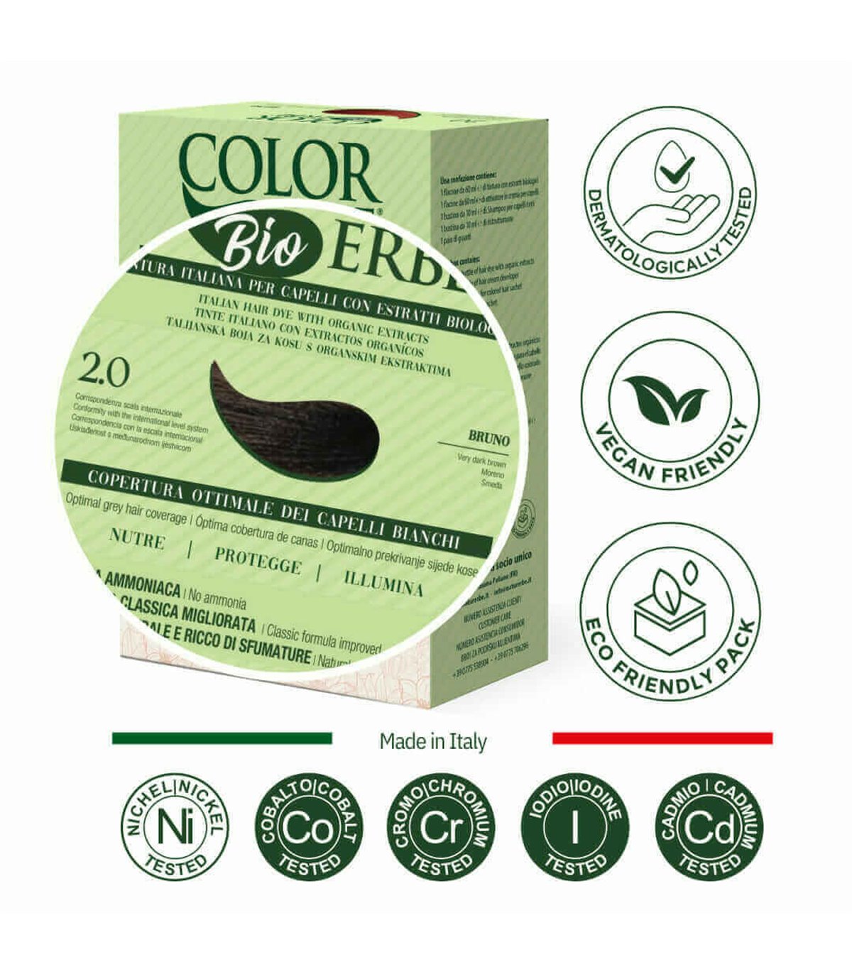 Objetivo garantizado: cobertura óptima del cabello blanco y efecto natural \ n \ Hacemos que la cobertura de los blancos depende del tipo de cabello y, para cada evolución de la fórmula, siempre hemos mantenido la promesa hecha: ¡cobertura óptima del cabello blanco! Gracias a la cuidadosa elección de la composición y los matices más apropiados, también devolvemos un efecto natural extraordinario, nutrir, proteger e iluminar su cabello. \ n \ n \ n \ n Garantía de calidad - con extractos biológicos y sin ... \ n \ Nla Hierbas: la tintura, protege e ilumina, gracias a los extractos orgánicos: flores de manzanilla, hojas de nuez, germen de trigo, aceite de argán y flores de caléndula y siempre es más seguro para su salud: sin amonio, resorcina, nonoxynol, parabeni y formaldehyde. \ n \ n \ n \ n Garantía de seguridad: probada dermatológicamente en piel sensible \ n La colaboración con el Centro de Cosmetología de la Universidad de Ferrara, hemos estudiado la mejor fórmula incluso para la piel más sensible: las tinturas herbales no son irritantes y están certificadas como una prueba dermatológica en la piel sensible. \ n \ n \ n \ n respeto por ti - en gel sin desechos de desechos \ n \ Ncce La tintura herbal está en gel y no tira nada. Puede mezclar la cantidad que necesita, simplemente con nuestras tapas que actúan como dospers. El cierre perfecto de la botella le permite mantener el producto no utilizado para una aplicación posterior. \ n \ n \ n \ n Respeto por el medio ambiente - Embalaje ecológico \ n \ Nsia la caja de que las botellas están compuestas principalmente de materiales reciclados y son 100%reciclables. \ n \ n \ n \ n aplicación fácil y no Cola \ n La formulación de gel \ nla permite una fácil aplicación de la tintura incluso para no expertos y garantiza la mezcla de la mezcla durante la colocación.