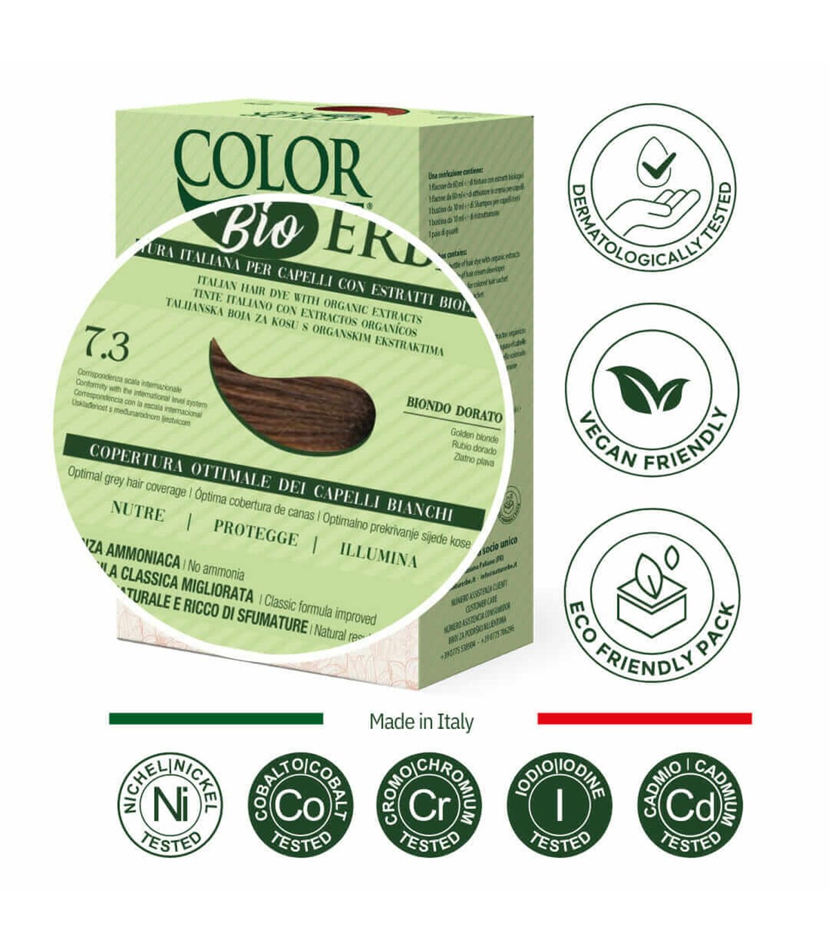 Objetivo garantizado: cobertura óptima del cabello blanco y efecto natural \ n \ Hacemos que la cobertura de los blancos depende del tipo de cabello y, para cada evolución de la fórmula, siempre hemos mantenido la promesa hecha: ¡cobertura óptima del cabello blanco! Gracias a la cuidadosa elección de la composición y los matices más apropiados, también devolvemos un efecto natural extraordinario, nutrir, proteger e iluminar su cabello. \ n \ n \ n \ n Garantía de calidad - con extractos biológicos y sin ... \ n \ Nla Hierbas: la tintura, protege e ilumina, gracias a los extractos orgánicos: flores de manzanilla, hojas de nuez, germen de trigo, aceite de argán y flores de caléndula y siempre es más seguro para su salud: sin amonio, resorcina, nonoxynol, parabeni y formaldehyde. \ n \ n \ n \ n Garantía de seguridad: probada dermatológicamente en piel sensible \ n La colaboración con el Centro de Cosmetología de la Universidad de Ferrara, hemos estudiado la mejor fórmula incluso para la piel más sensible: las tinturas herbales no son irritantes y están certificadas como una prueba dermatológica en la piel sensible. \ n \ n \ n \ n respeto por ti - en gel sin desechos de desechos \ n \ Ncce La tintura herbal está en gel y no tira nada. Puede mezclar la cantidad que necesita, simplemente con nuestras tapas que actúan como dospers. El cierre perfecto de la botella le permite mantener el producto no utilizado para una aplicación posterior. \ n \ n \ n \ n Respeto por el medio ambiente - Embalaje ecológico \ n \ Nsia la caja de que las botellas están compuestas principalmente de materiales reciclados y son 100%reciclables. \ n \ n \ n \ n aplicación fácil y no Cola \ n La formulación de gel \ nla permite una fácil aplicación de la tintura incluso para no expertos y garantiza la mezcla de la mezcla durante la colocación.