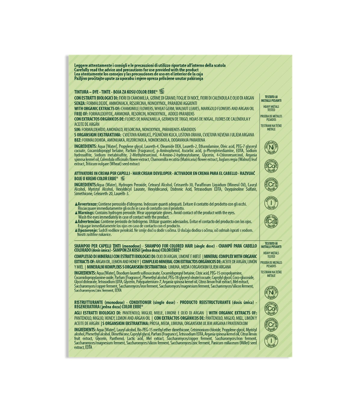 Objetivo garantizado: cobertura óptima del cabello blanco y efecto natural \ n \ Hacemos que la cobertura de los blancos depende del tipo de cabello y, para cada evolución de la fórmula, siempre hemos mantenido la promesa hecha: ¡cobertura óptima del cabello blanco! Gracias a la cuidadosa elección de la composición y los matices más apropiados, también devolvemos un efecto natural extraordinario, nutrir, proteger e iluminar su cabello. \ n \ n \ n \ n Garantía de calidad - con extractos biológicos y sin ... \ n \ Nla Hierbas: la tintura, protege e ilumina, gracias a los extractos orgánicos: flores de manzanilla, hojas de nuez, germen de trigo, aceite de argán y flores de caléndula y siempre es más seguro para su salud: sin amonio, resorcina, nonoxynol, parabeni y formaldehyde. \ n \ n \ n \ n Garantía de seguridad: probada dermatológicamente en piel sensible \ n La colaboración con el Centro de Cosmetología de la Universidad de Ferrara, hemos estudiado la mejor fórmula incluso para la piel más sensible: las tinturas herbales no son irritantes y están certificadas como una prueba dermatológica en la piel sensible. \ n \ n \ n \ n respeto por ti - en gel sin desechos de desechos \ n \ Ncce La tintura herbal está en gel y no tira nada. Puede mezclar la cantidad que necesita, simplemente con nuestras tapas que actúan como dospers. El cierre perfecto de la botella le permite mantener el producto no utilizado para una aplicación posterior. \ n \ n \ n \ n Respeto por el medio ambiente - Embalaje ecológico \ n \ Nsia la caja de que las botellas están compuestas principalmente de materiales reciclados y son 100%reciclables. \ n \ n \ n \ n aplicación fácil y no Cola \ n La formulación de gel \ nla permite una fácil aplicación de la tintura incluso para no expertos y garantiza la mezcla de la mezcla durante la colocación.